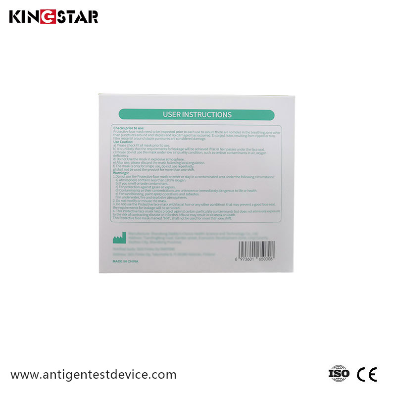 FFP2 Protective Face Mask er en stereoskopisk type med størrelse 16,5 cm × 10,5 cm. Dens partikkelfiltreringseffektivitet≥94%(Test i henhold til EN 149 FFP2 NR)med utøvende standard EN 149:2001+A1:2009 FFP2 NR